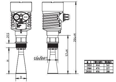SKD5喇叭口雷達物位計 SKD56喇叭口雷達物位計測量最大距離可達30米。天線被進一步優(yōu)化處理,新型的快速的微處理器可以進行更高速率的信號分析處理,使得儀表可以用于如:反應釜或固體料倉非常復雜的測量條件。 原理 喇叭口雷達物位計天線發(fā)射較窄的微波脈沖,經(jīng)天線向下傳輸,微波接觸到被測介質表面后被反射回來,再次被天線系統(tǒng)接收并將其傳輸給電子線路部分自動轉換成物位信號。(因為微波傳播速度極快,電磁波到達目標并經(jīng)反射返回接收器這一來回所用的時間幾乎是瞬間的) SKD56喇叭口雷達物位計參數(shù) 應 用:耐溫、耐壓、輕微腐蝕的液體、固體 測量范圍:30米 過程連接:螺紋、法蘭 介質溫度:-40~80℃;-40~130℃ -60~250℃;-60~1000℃ 過程壓力:-0.1~4MPa 精 度:±5mm 頻率范圍:26GHz 防爆等級:Exb IIBT4 Gb 防護等級:IP67 信號輸出:4~20mA/HART(兩線/四線) SKD56喇叭口雷達物位計外形尺寸圖 ![]() SKD56喇叭口雷達物位計安裝 ![]() SKD56喇叭口雷達物位計選型