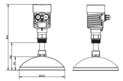 SKD58拋物面雷達物位計 SKD58拋物面雷達物位計測量最大距離可達80米。天線被進一步優(yōu)化處理,新型的快速的微處理器可以進行更高速率的信號分析處理,使得儀表可以用于如:反應釜或固體料倉非常復雜的測量條件。 原理 拋物面雷達物位計天線發(fā)射較窄的微波脈沖,經(jīng)天線向下傳輸,微波接觸到被測介質(zhì)表面后被反射回來,再次被天線系統(tǒng)接收并將其傳輸給電子線路部分自動轉(zhuǎn)換成物位信號。(因為微波傳播速度極快,電磁波到達目標并經(jīng)反射返回接收器這一來回所用的時間幾乎是瞬間的) SKD58拋物面雷達物位計參數(shù) 應??用:固體料、過程容器或強粉塵易結(jié)晶、結(jié)露場合 測量范圍:80米 過程連接:螺紋、法蘭 介質(zhì)溫度:-40~250℃ -60~400℃ 過程壓力:常壓 精??度:±15mm 頻率范圍:26GHz 防爆等級:Exb IIBT4 Gb 防護等級:IP67 信號輸出:4~20mA/HART(兩線/四線)RS485/Modbus SKD58拋物面雷達物位計外型尺寸圖 ![]() SKD58拋物面雷達物位計安裝 ![]() SKD58拋物面雷達物位計選型