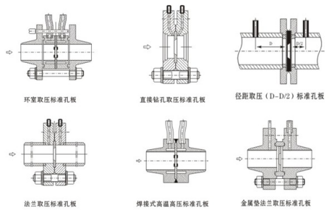 (1)角接鉆孔取壓;(2)角接環(huán)室取壓;(3)法蘭取壓;(4)徑距取壓;