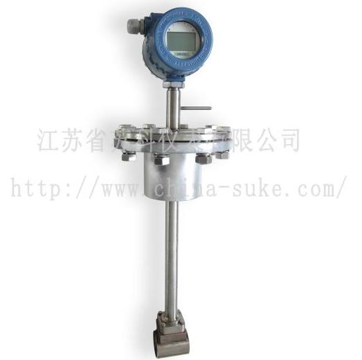 按國(guó)際標(biāo)準(zhǔn)化組織IS07145(在環(huán)形截面封閉管道中的流體流量測(cè)定—在截面一點(diǎn)的速度測(cè)量法),采用埋入壓電晶體的渦街測(cè)速探頭,插入大口徑工業(yè)管道內(nèi),將卡門旋渦頻率轉(zhuǎn)換為與流量成正比的電流或電壓脈沖信號(hào)或4~20mADC電流信號(hào)。